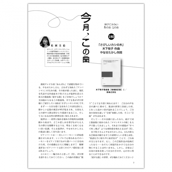 ・好評連載:今月、この曲「木下牧子 作曲・やなせたかし作詞『さびしいカシの木』」(松岡美絵)/Editor's Recommend New Release Album/今月のプレゼント