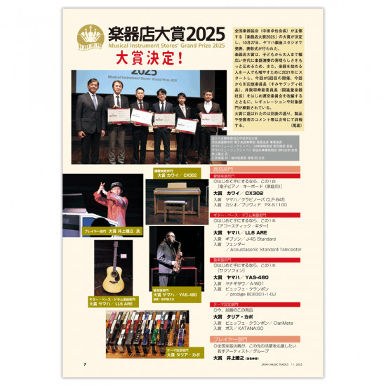 国内はもとよりアメリカのTHE MUSIC TRADES誌、ドイツのDAS MUSIKINSTRUMENT誌、中国の雑誌『楽器』と編集提携し、広く世界から情報を収集しています。